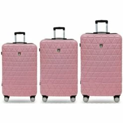 The American Flyer Astor Collection 5-Piece Spinner Luggage Set features a fashionable and easy to spot print on 2 check-in luggage pieces, a carry-on luggage, a wheeled duffel and a personal carry-on duffel.