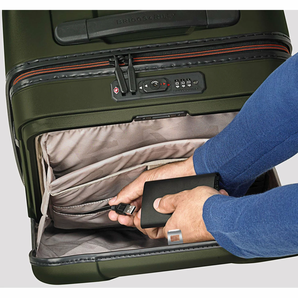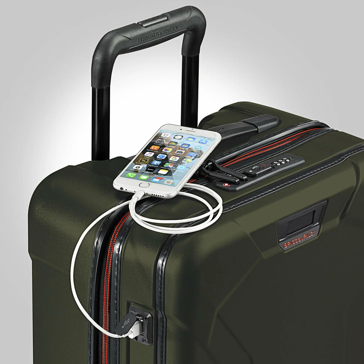 Perfect for your next trip overseas is the Briggs & Riley Torq International Carry On Spinner. Featuring an external USB port, you won’t have to worry about running out of battery. And forget trying to wrestle your laptop out of your bag at security; our patented hinged front pocket makes packing electronics and important items a breeze.