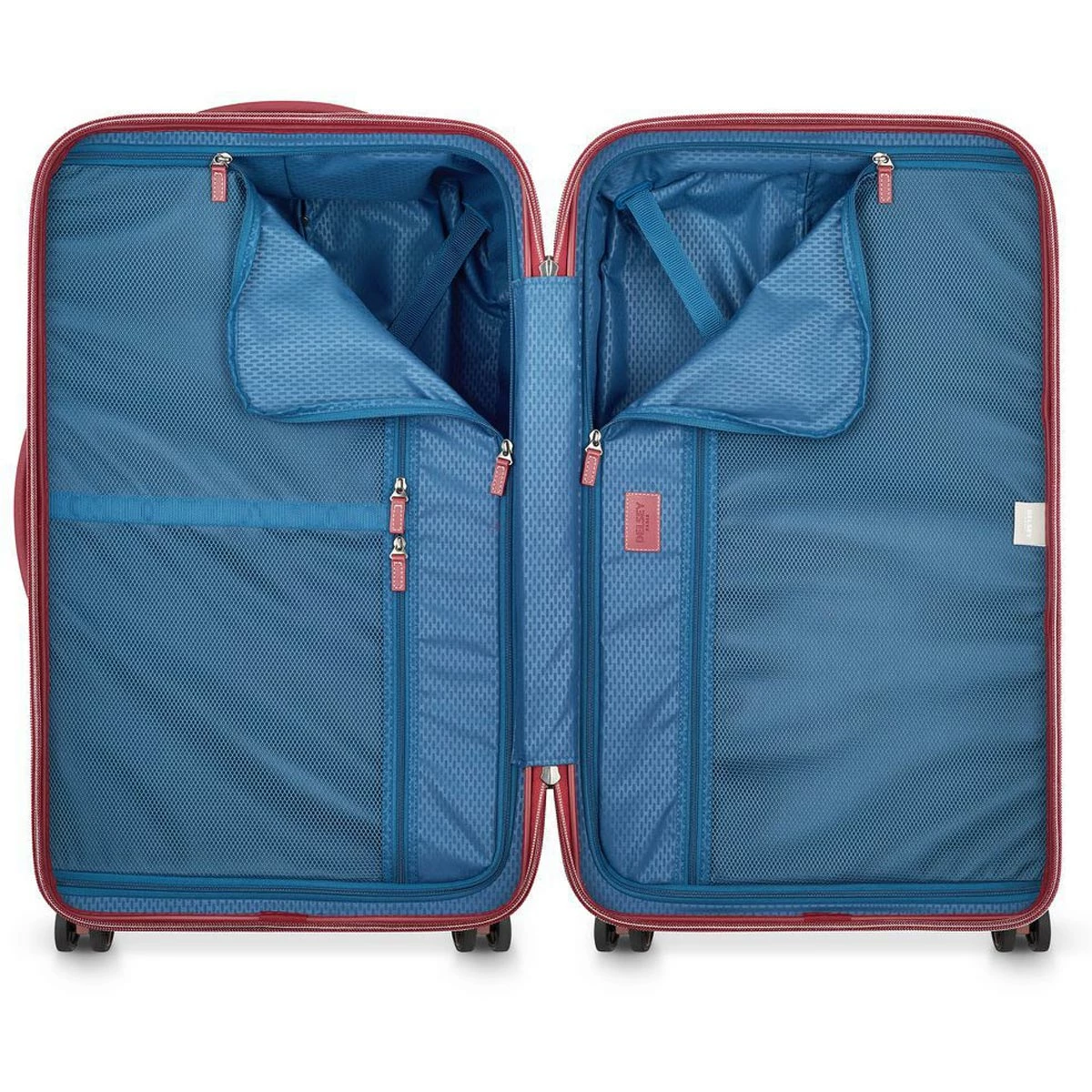 The Delsey Chatelet Air 2.0 26″ Trunk Spinner is designed in a sturdy trunk format which features an ergonomic trolley system with soft-grip side and top carrying handles. Shock-absorbing corner protectors safeguard against wear and tear and add a touch of elegance to the bag.