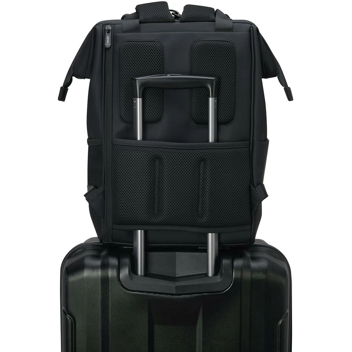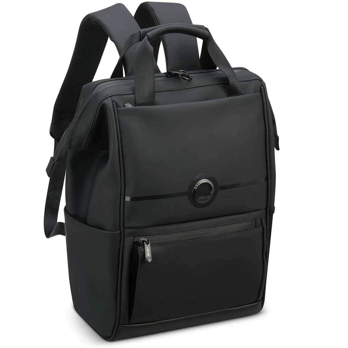 This Delsey Turenne Backpack is perfect for a quick getaways or daily use. Features a large big-mouth top opening for easy packing with a beautiful lining made of recycled materials. Easily carry this backpack hands free by sliding it over the handle of your upright suitcase with the rear sleeve pocket, this pack makes for a great personal bag when traveling.