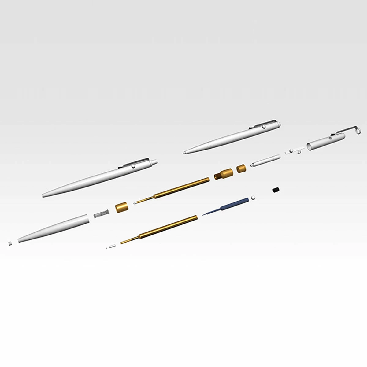 All Astronaut Pens are proudly produced in the USA! Each is made of solid brass with hard chrome plating, giving it a solid feel in your hand as you write. They also feature a unique clicking mechanism that extends the point via the button on the top, with a release button on the side to retract it. This side button has a substantial sound & feel to it, helping to ensure that you will always remember to retract the point before sliding the pen back into your pocket.