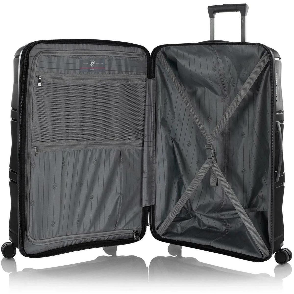 The Heys Milos 30″ Expandable Spinner is lightweight and impact resistant able to withstand a 750lb impact without breaking. Available in five stylish metallic colors with a subtle dual textured shell for a striking appearance. It features a fully-lined interior with zippered divider, buckled compression straps and zippered pockets as well as an expansion system that allows for an extra 20% in packing capacity. The 360° spinner wheels allow for effortless motion in different terrain and the flush mounted built-in color matched TSA approved combination lock help keep your valuables safe.