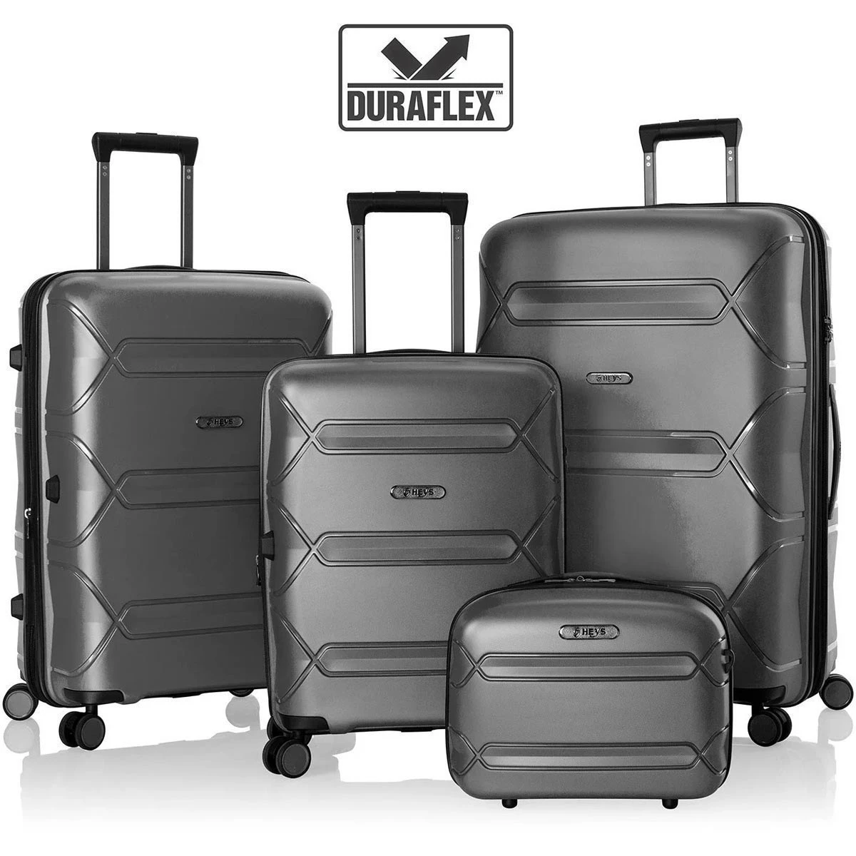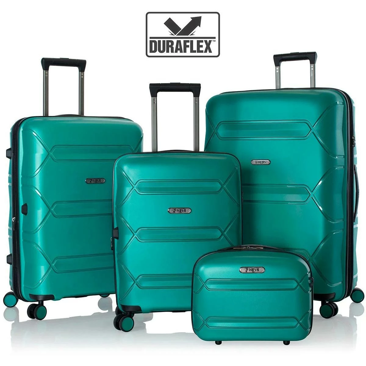 The Heys Milos 4 Piece Expandable Spinner Set is lightweight and impact resistant able to withstand a 750lb impact without breaking. Available in five stylish metallic colors with a subtle dual textured shell for a striking appearance. It features a fully-lined interior with zippered divider, buckled compression straps and zippered pockets as well as an expansion system that allows for an extra 20% in packing capacity. The 360° spinner wheels allow for effortless motion in different terrain and the flush mounted built-in color matched TSA approved combination lock help keep your valuables safe.