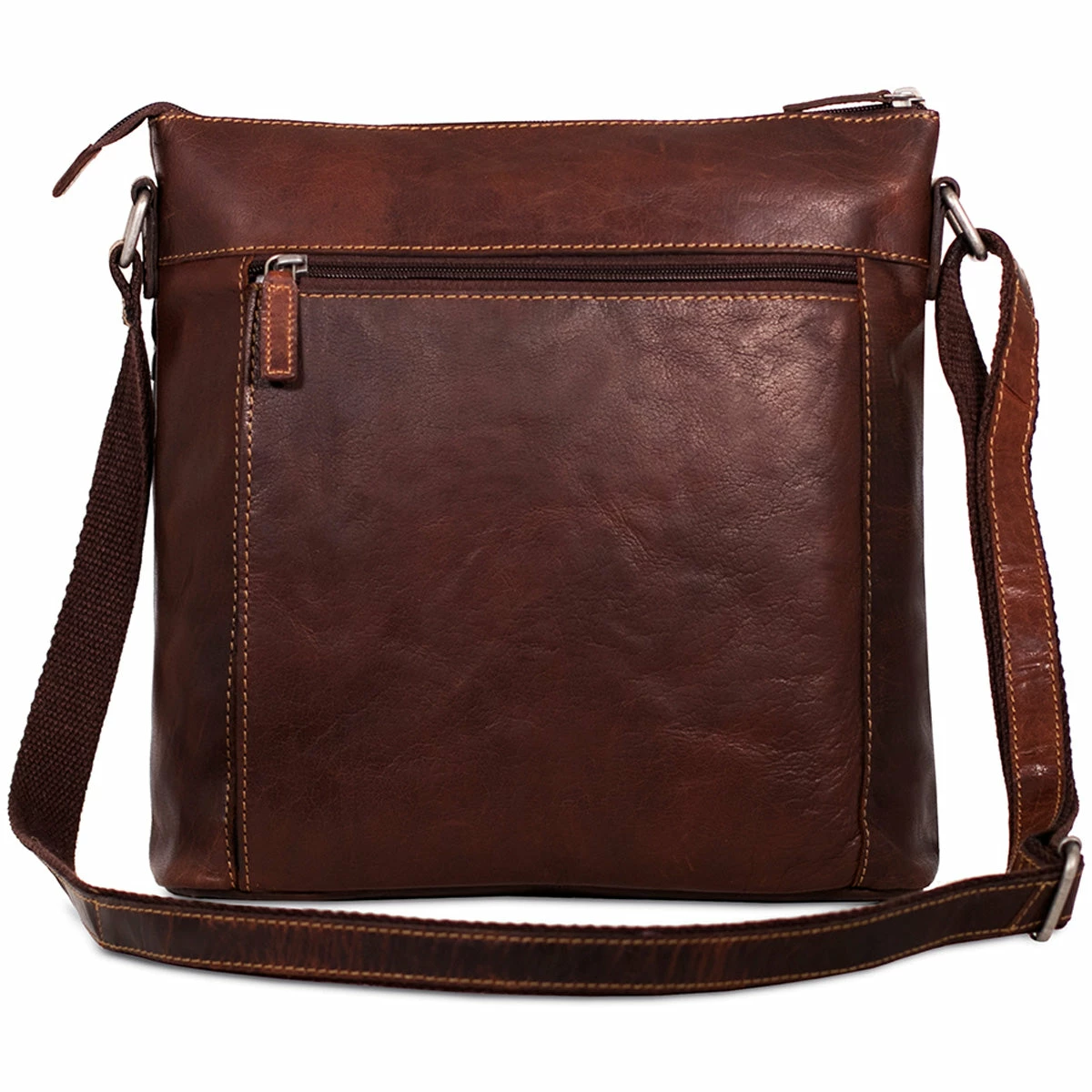 This Large crossbody bag is made from hand-stained buffalo leather with the right mix of form and function. Beneath its secure top zip closure, the bag has pockets to keep your essentials organized for a quick stroll, shopping, or travel to the other side of the world. The outside front and back pockets offer added convenience and can hold your wallet, mobile phone, travel documents, or anything else that you need close at hand. The adjustable leather shoulder strap is versatile and has webbing on the backside for added strength and grip on your shoulder while remaining comfortable to wear. This handmade leather bag features: