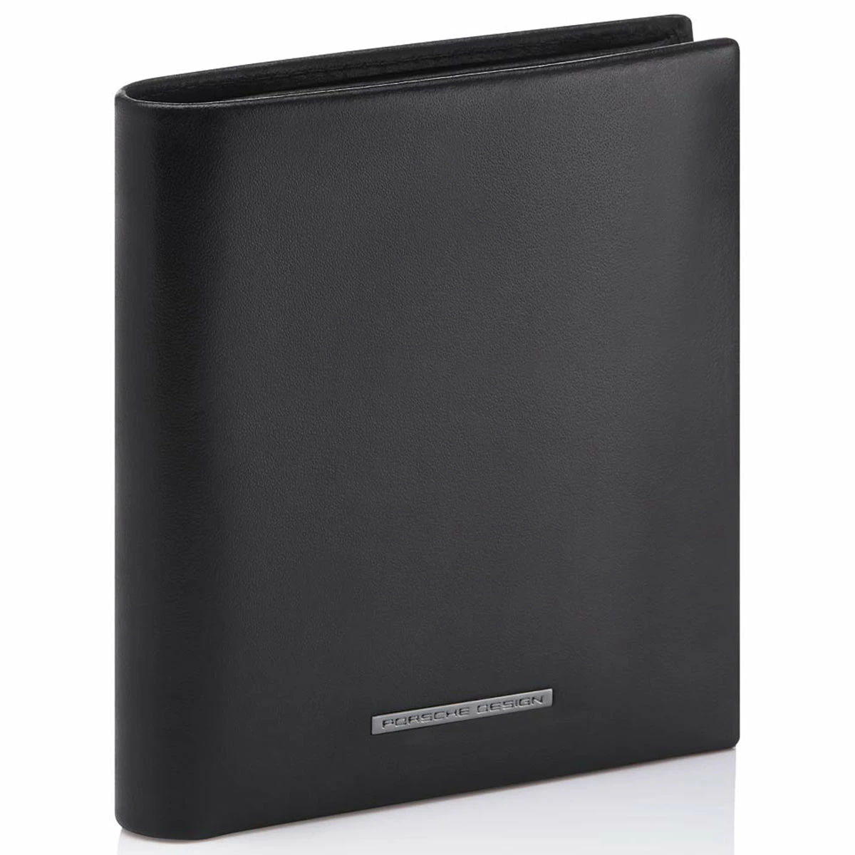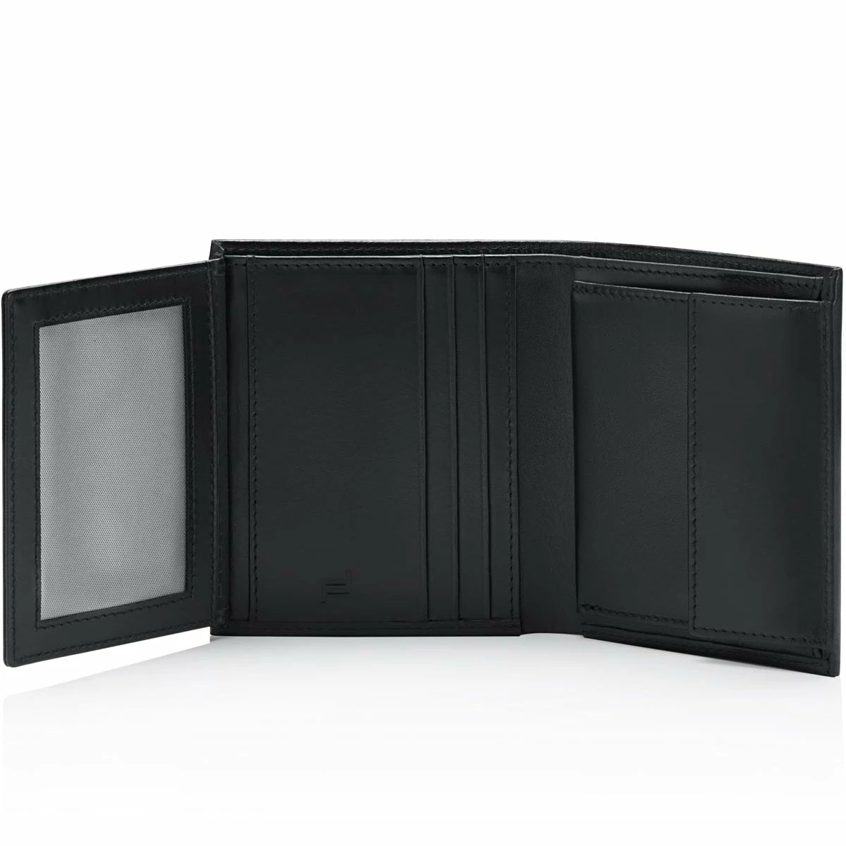 High-quality, shiny smooth leather in black, seamlessly created exteriors and the characteristic metal Porsche Design logo plate give the Porsche Design Classic Wallet 6 a timeless and minimalistic style. The high-quality interior with signature design details is in line with the smart design: the vertical trifold wallet amazes through a spacious, functional interior design. The vertically expandable wallet offers space for all important cards and receipts with six credit card slots, a coin compartment with snap fastener, a compartment for bills, a mesh compartment for IDs and a larger pocket for items such as business cards.
