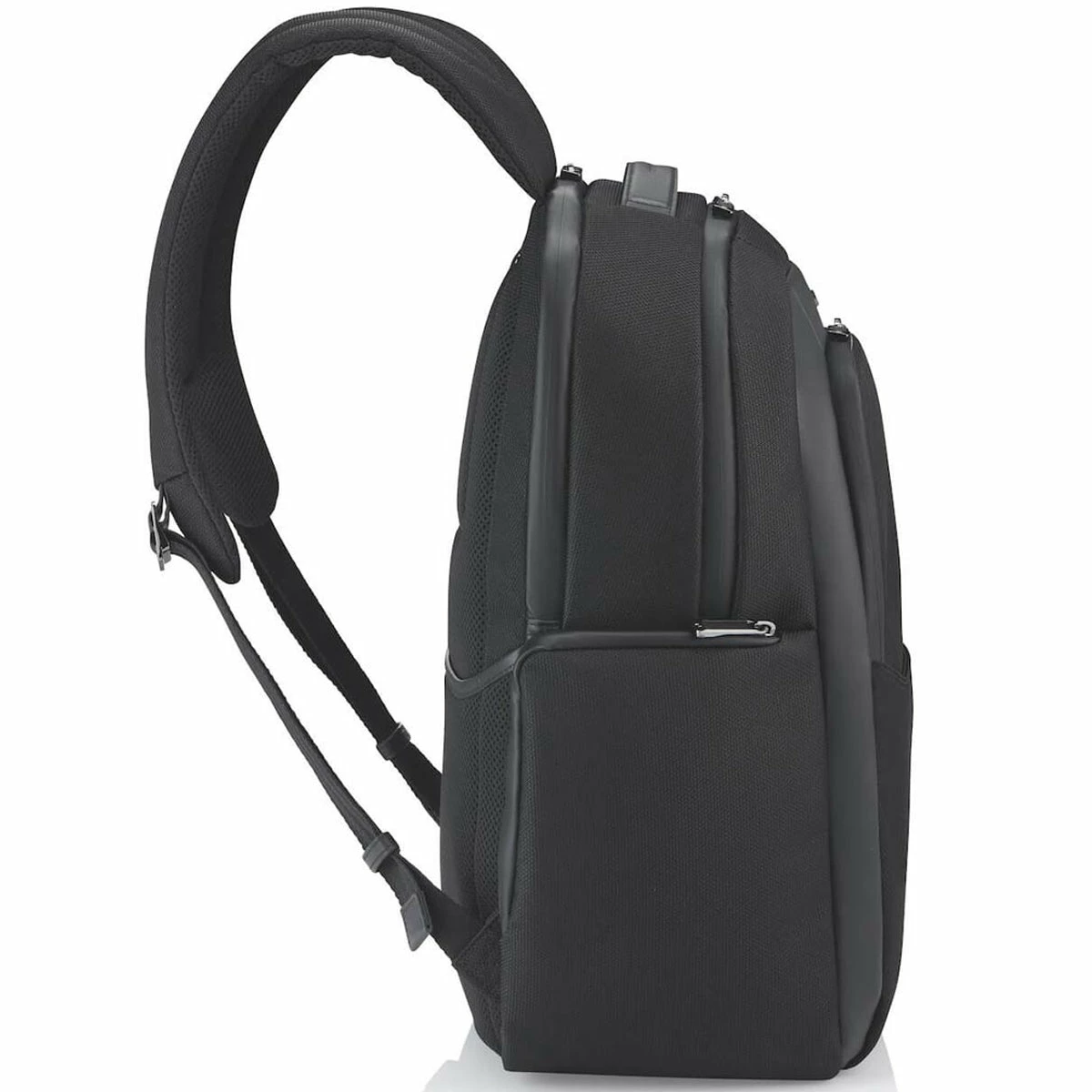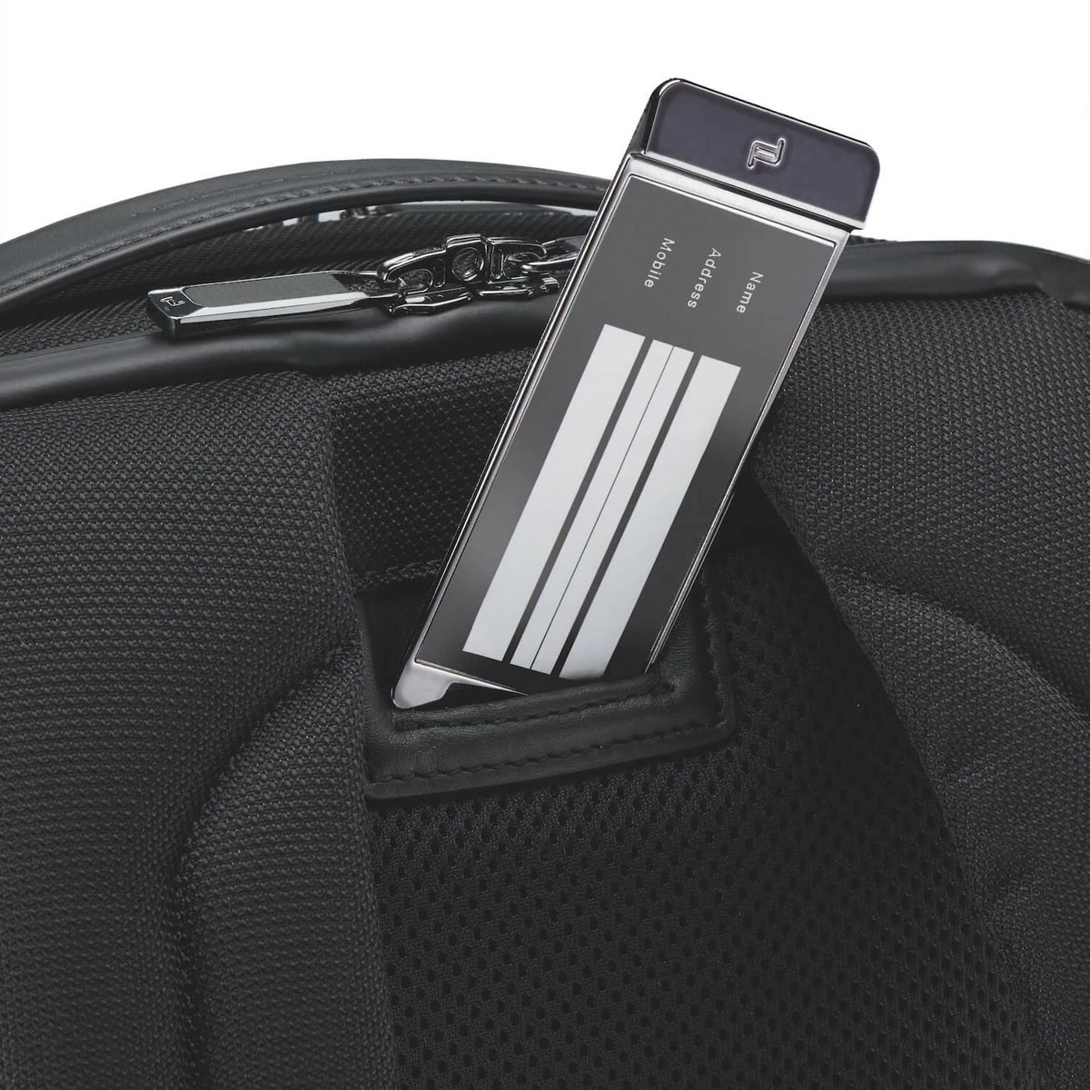 The combination of structured water-repellent nylon and significant smooth leather details does not just make the Porsche Design Roadster Nylon Backpack L an optical highlight – the modern business backpack is also the perfect choice for a daily commute. The 16″” laptop compartment behind the big main compartment can be opened up completely during check-in. Everything else you need fits perfectly in the separate front compartment with a business organizer, the additional front pocket and the zipper side pockets. Valuables such as keys can be stored in the pocket hidden in the trolley link. A padded backside and soft, padded shoulder straps ensure that the backpack can be worn comfortably despite its generous volume.