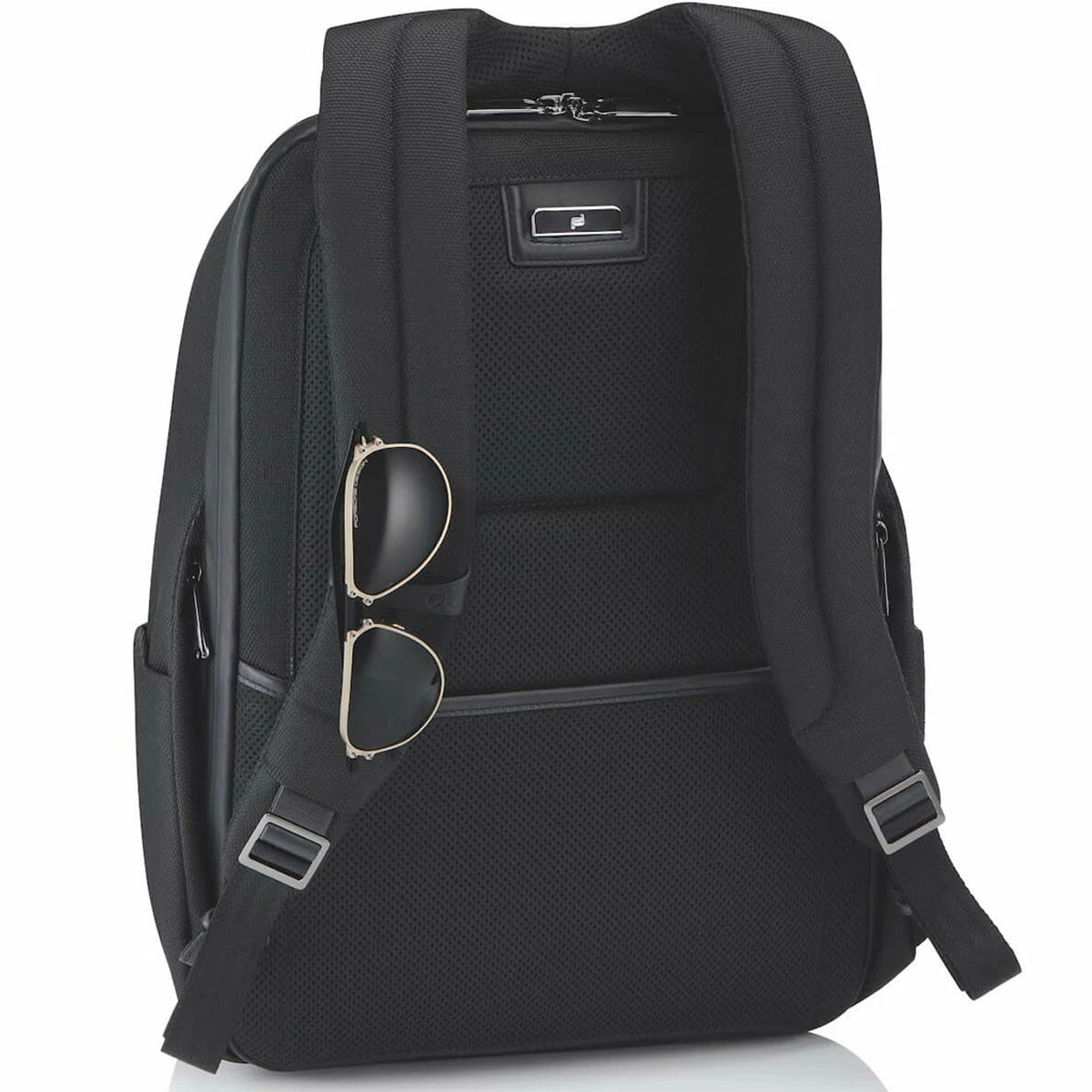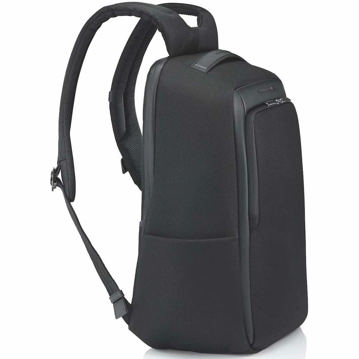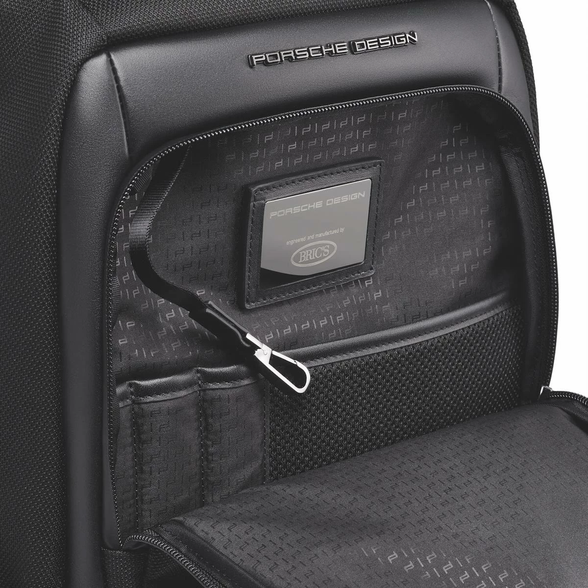 The combination of structured water-repellent nylon and significant smooth leather details does not just make the Porsche Design Roadster Nylon Backpack M an optical highlight – the modern business backpack is the perfect implementation of the motto “”Pure & Secure””. The large main compartment with a 15″” laptop compartment can be accessed on the backside, underneath the padded shoulder straps. This means all of your items are securely protected – an essential advantage when traveling. The front compartment with business organizer holds all important small items. Valuables such as keys can be stored in the pocket hidden in the trolley link. The softly padded backside and padded shoulder straps make sure that the backpack can be worn comfortably.