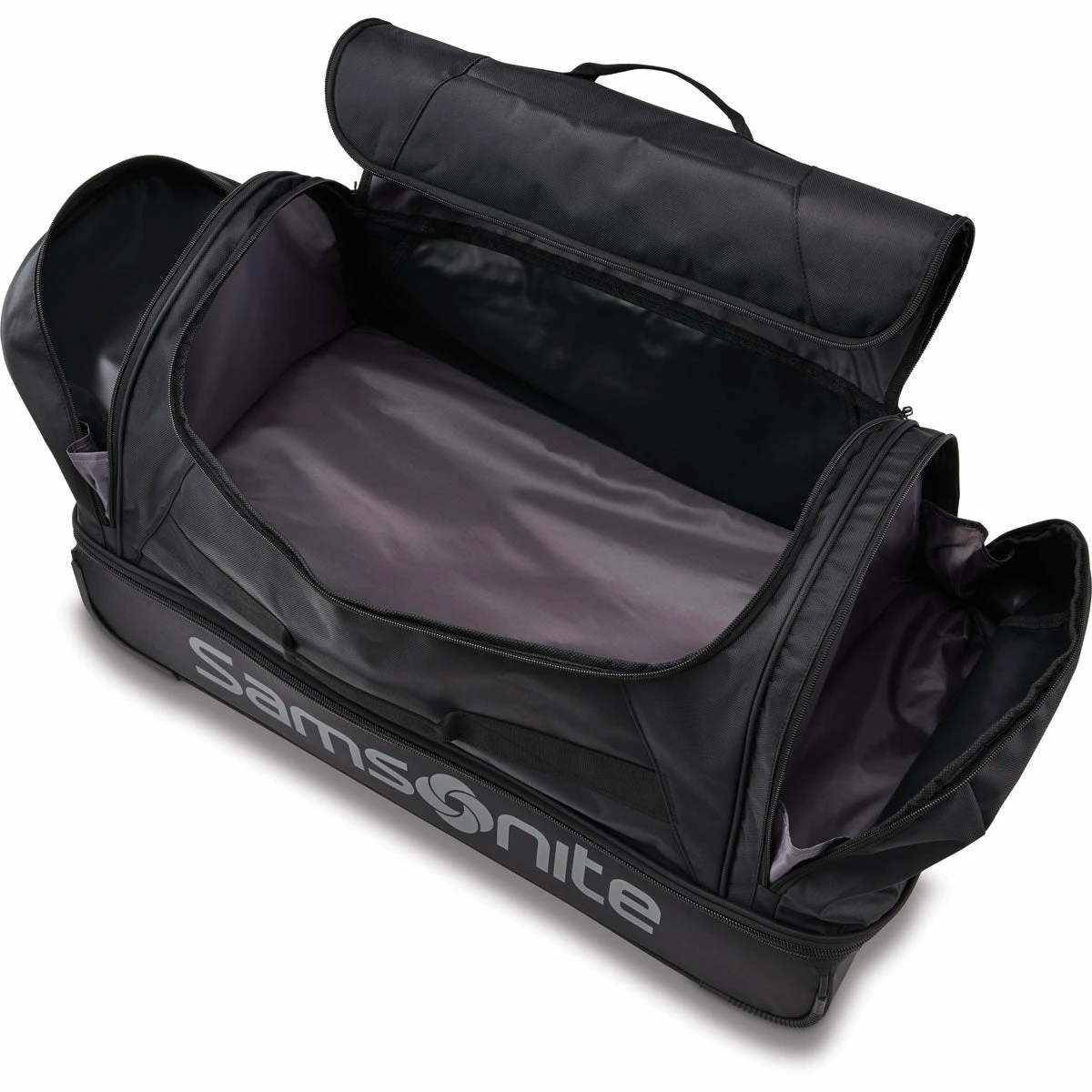 An update to the original Andante wheeled duffel, Andante 2 boasts added features for convenience, while continuing to provide maximum durability for the toughest travel. Andante 2 wheeled duffels are constructed using water resistant polyester, have a locking pull handle and smooth rolling wheels for effortless mobility. Multiple exterior grab handles allow for easy handling from a variety of points for multiple carrying options.The drop bottom compartment, and large U-shaped openings make packing and finding belongings a breeze.
