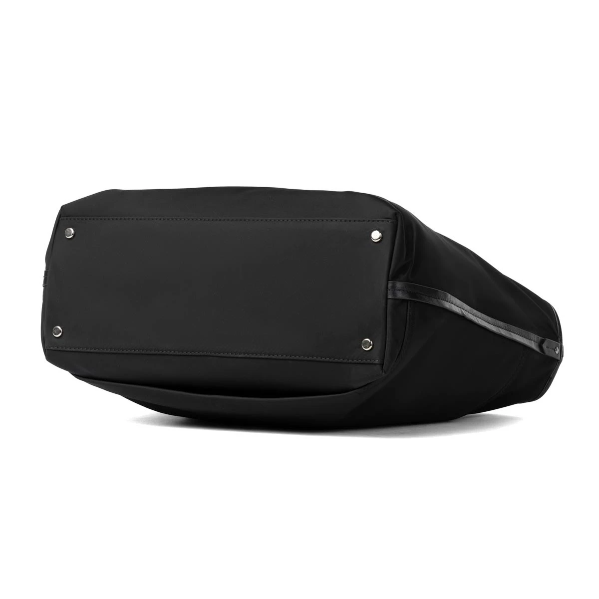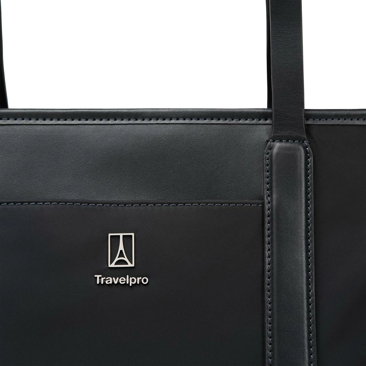 - Crafted with high-quality, stain-resistant nylon fabric and leather accents, this Tote looks as good as it performs. Separate padded laptop and tablet sleeves protect electronics, while a zippered accessory pocket and key leash offer added interior organization. Outside, a Travelpro® QuickSlip™ front pocket with magnetic closure is ideal for storing a cell phone or other essentials for easy access.
