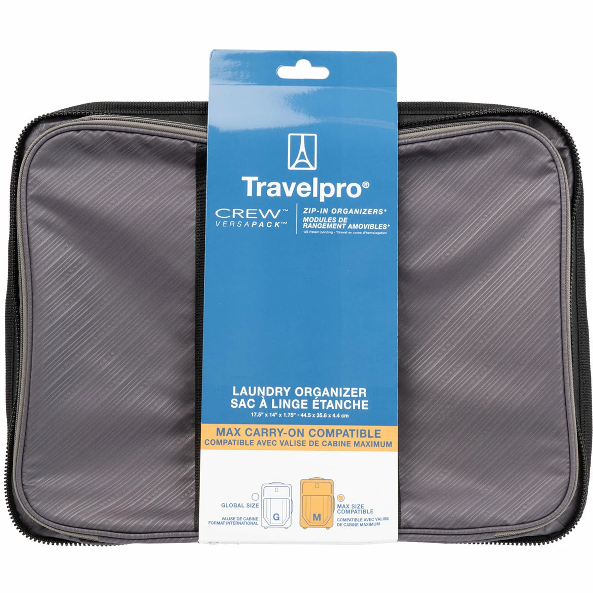 Finally, perfectly-designed, integrated storage for your laundry, workout clothes, beachwear and more! The Travelpro Crew Versapack Laundry Organizer (Max Size Compatible) features a water-resistant lining that keeps damp or dirty items away from the rest of your packed contents to protect clean garments from migrating moisture and odors.
