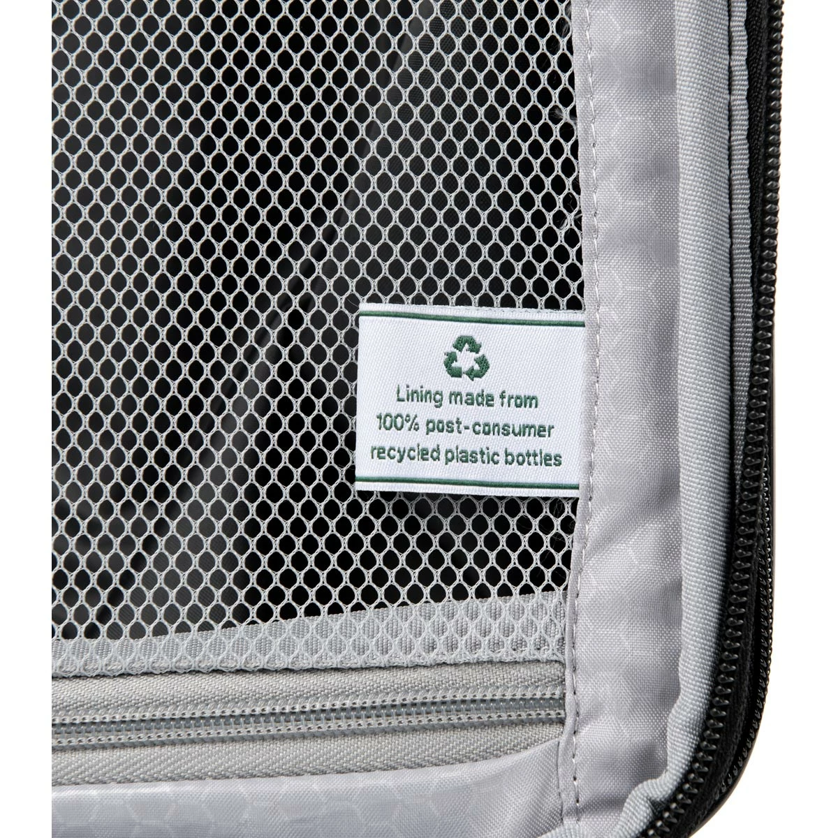 - Interior lining made from 100% post consumer recycled plastic bottles to help reduce environmental waste then treated with H2O guard for moisture resistance