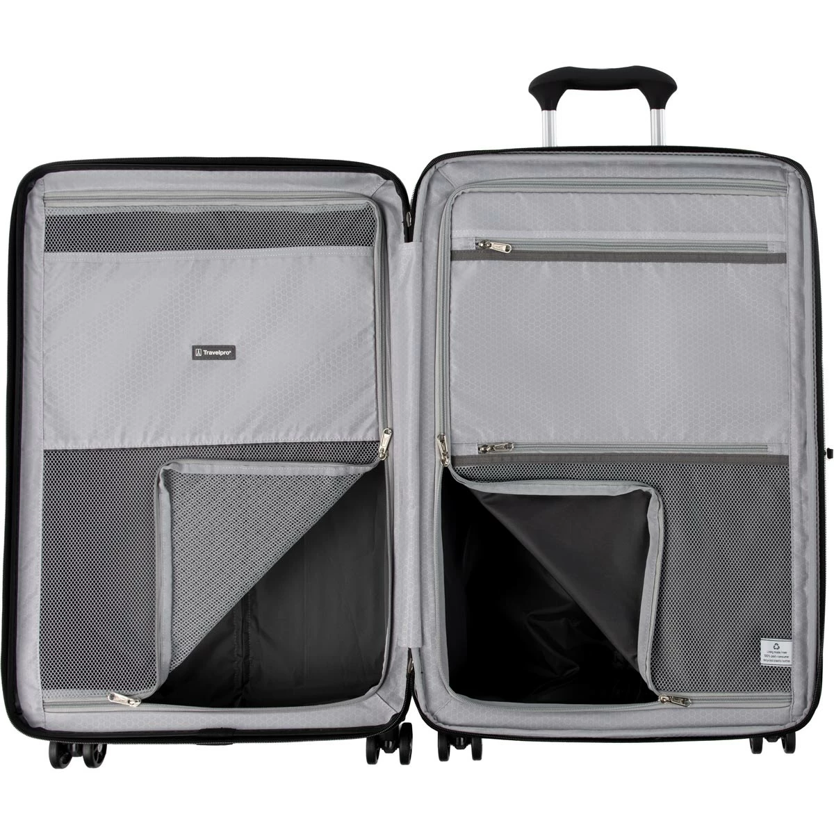 - Two zippered interior divider panels and multiple accessory pockets to keep contents organized, separated, and secure.