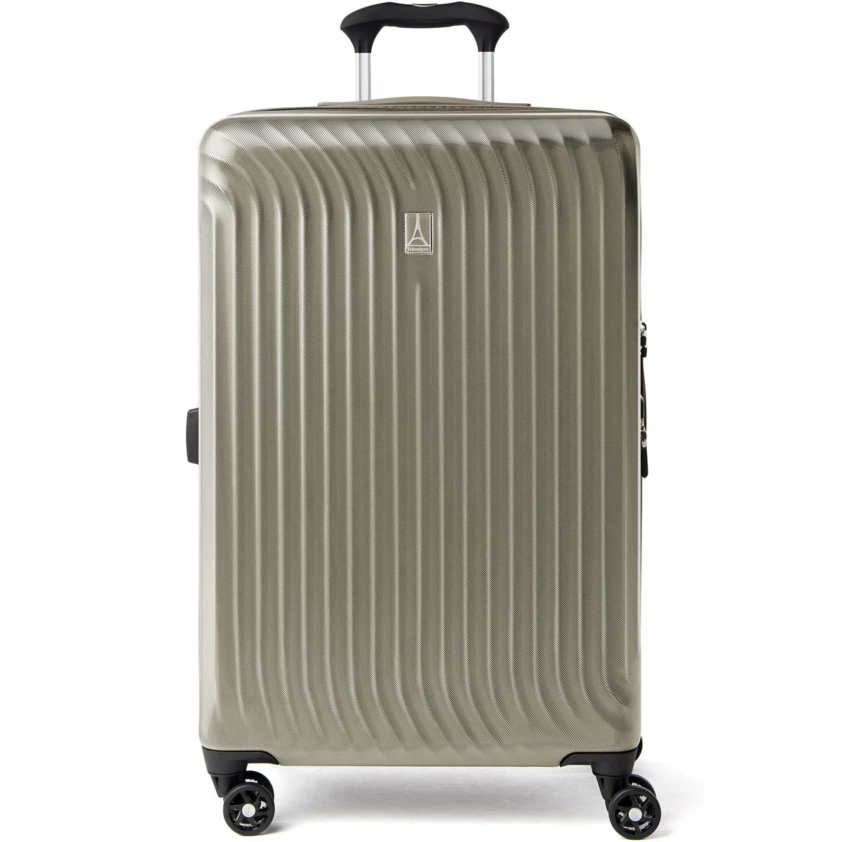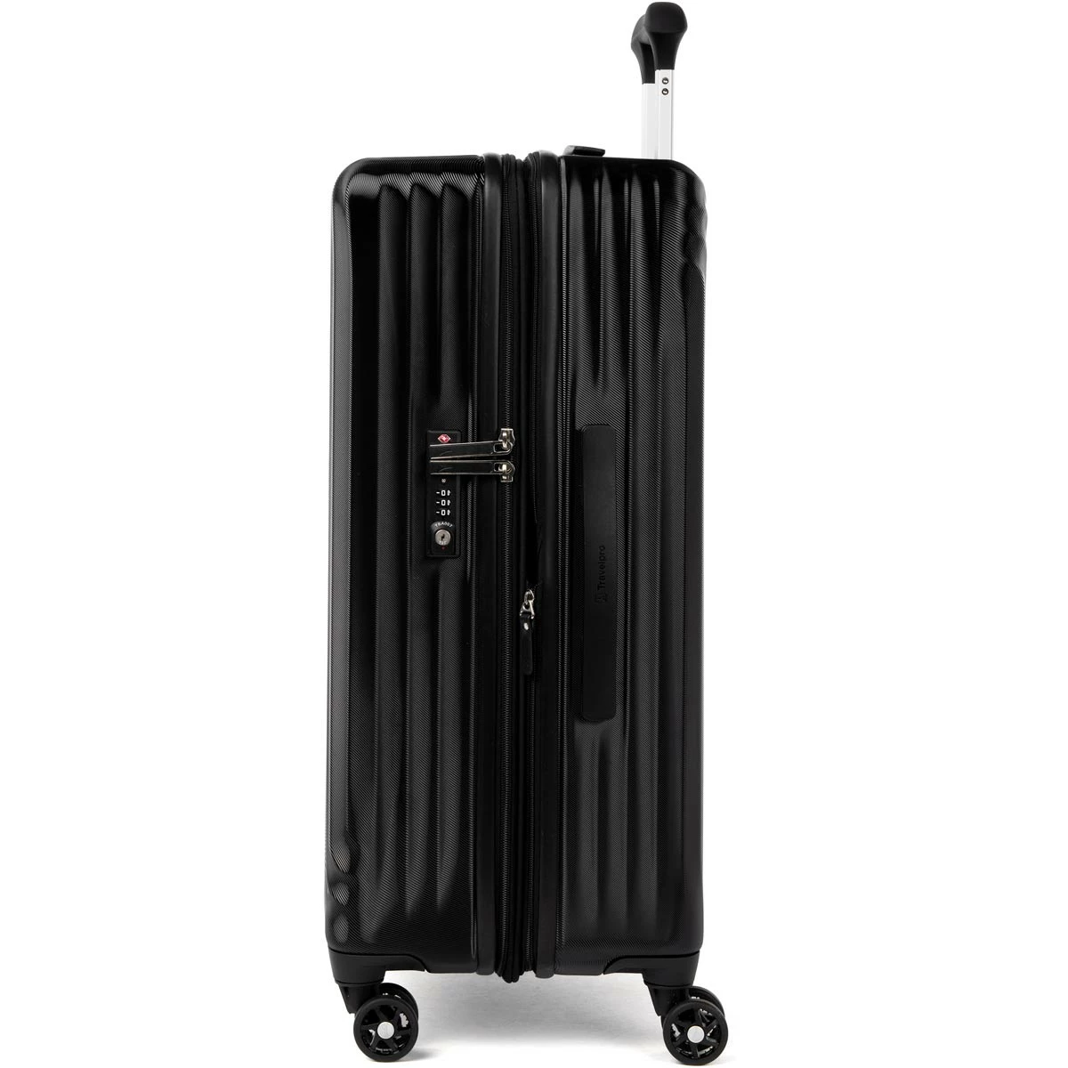 - Patented Contour Grip with rubberized finish adds comfort when pushing Spinner luggage