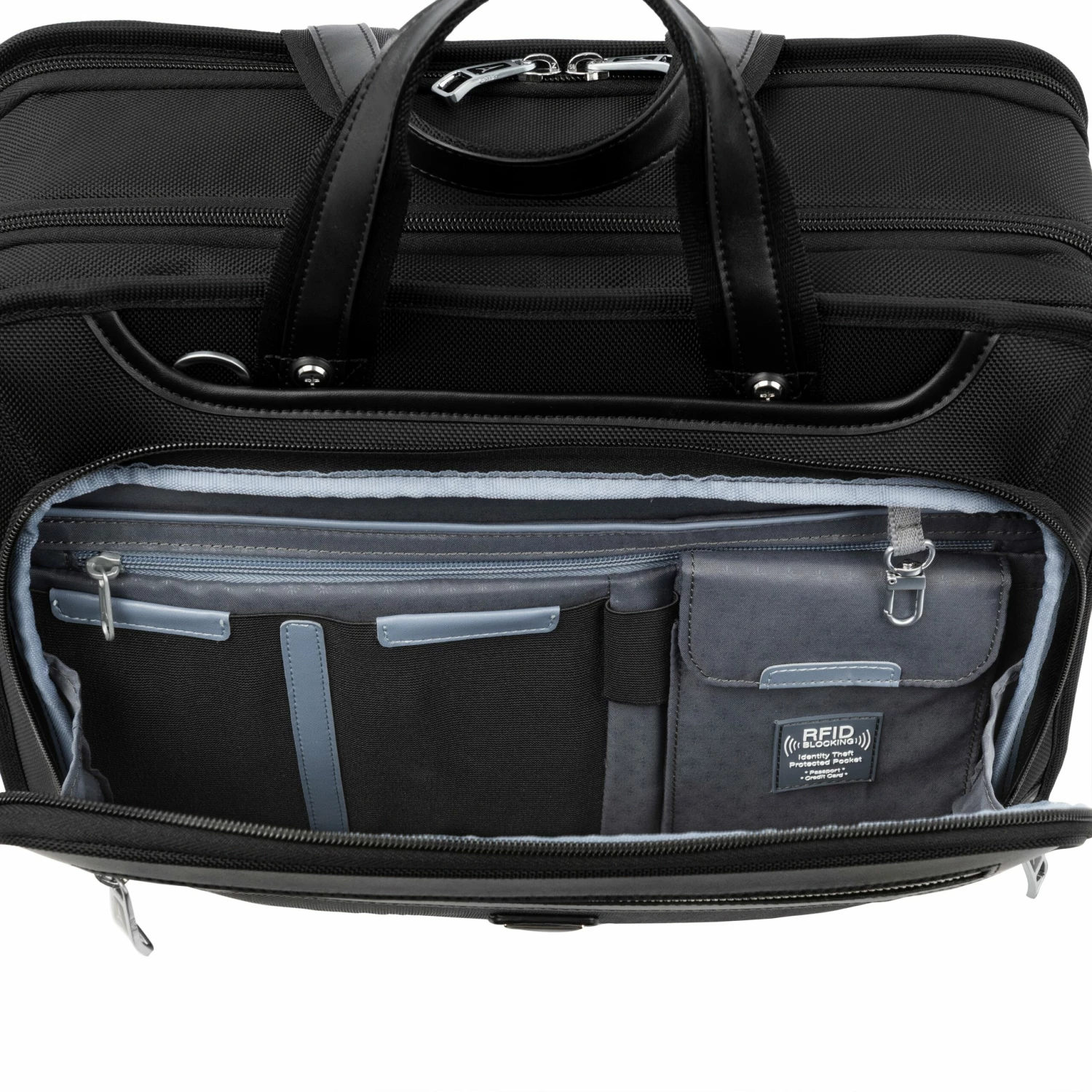 A business brief that grows with your needs. The Travelpro Platinum Elite Expandable Business Brief offers all the organization and convenience you need in a traveling brief with luxurious design details that stand out with style. The convenient expansion option gives you added packing capacity when needed for storing files, electronics or even a light jacket. Genuine leather carry handles feel as good as they look, while the high-density nylon fabric resists stains and abrasions to stay looking sharp.